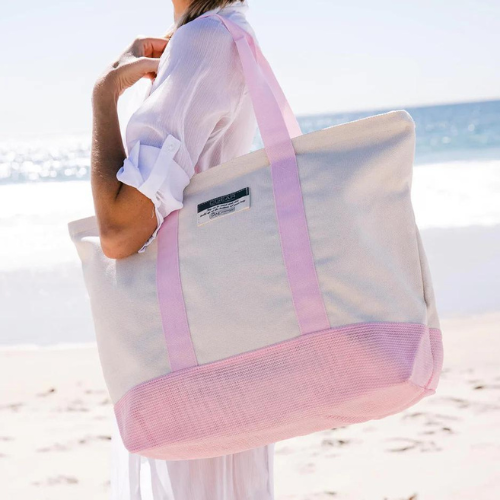 Our proprietary weave is a system of precisely engineered layers that form a type of conveyor belt. As you walk, particles of sand, dirt, and dust naturally sift through the mesh-like fabric. Because the layers are staggered, sand can only go one way (out), so debris won’t come up through the bag when you set it down.