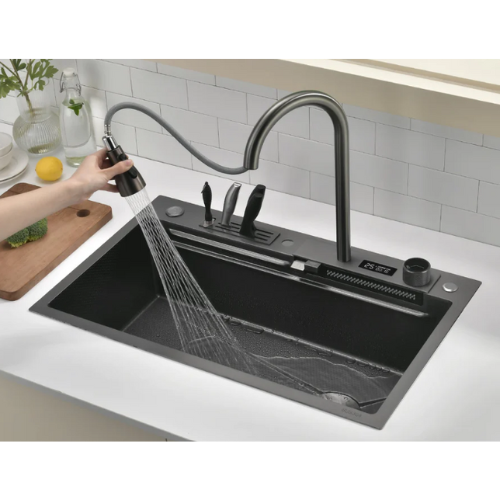 Buy Now Sale is Live Now Lefton Waterfall Workstation Kitchen Sink Set With Digital Temperature Display & Knife Holder-KS2204