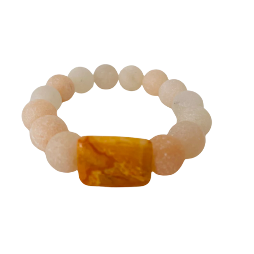 This bracelet features exquisite matte-finished peach gemstones that exude a soft and gentle charm. The matte finish adds a touch of sophistication and lends a contemporary aesthetic to the bracelet. The peach color brings warmth and elegance, making it a versatile accessory that can be worn for various occasions.