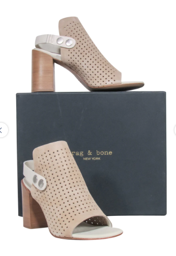 Bring high fashion to any season with Rag & Bone's beige laser cut print suede open toe block heel sandals. Add some pizzazz to outdoor parties this spring with these stylish beauties, then transition them into fall with a classic jeans-and-tee look. Talk about an all-season showstopper.