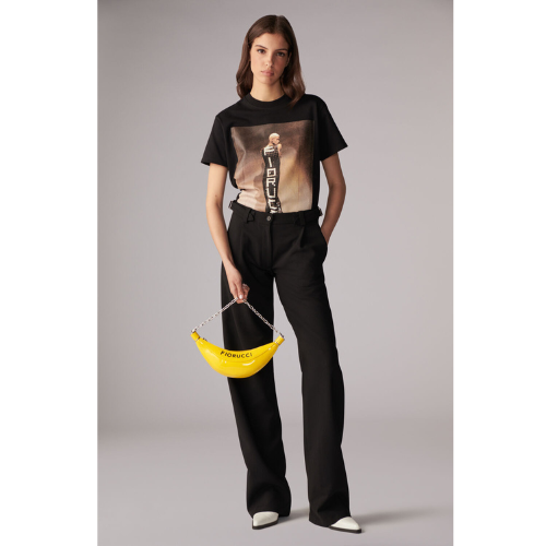 Unisex Tile Graphic T-Shirt in black, featuring the iconic Fiorucci tile dress photograph printed across the front. The luxe graphic tee is a relaxed fit with a classic crewneck, short sleeves, a straight hem, and is crafted from 100% premium organic cotton.