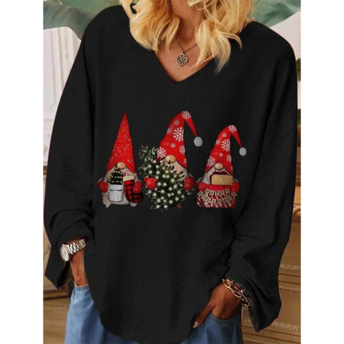 Get Discounts on Christmas Gnomes Print V-neck Long Sleeve T-shirt