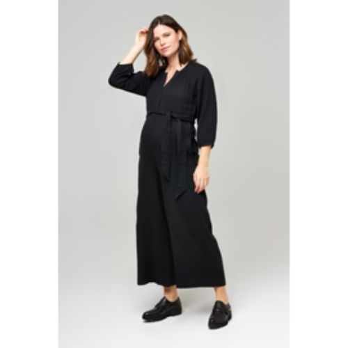 Our maternity and nursing friendly jumpsuit. Built in a double layer cotton gauze with a snap down front, and figure flattering sash. Maternity coveralls with a chic twist. Perfect for during and after pregnancy. The perfect comfy pregnancy jumpsuit for your next baby shower or dressy occasion.
