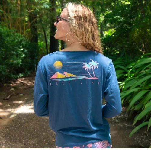 The Daze Ahead long sleeve sale tee is available in multiple colors and perfect for the warm weather! Features include a front, back, and sleeve screen printed graphic, garment wash and boyfriend fit. Made from 100% cotton jersey fabric, this Salt Life tank is stylish and comfortable.