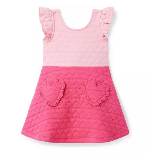 • Our soft quilted dress is stitched with love. Featuring flutter sleeves and ruffle-trimmed heart pockets perfect for Valentine's Day or any day.