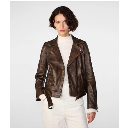 Get Discounts on Hot Deals Sale is Live Bryn Distressed Brown Moto Jacket