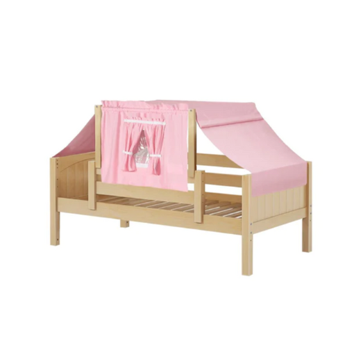 Transition your toddler out of the crib and into our adorable daybed with top tent. Front and back guardrails keep little ones super safe + secure. Colorful fabrics create a cozy space for both sleep and play. The perfect first bed, but easily converts as your child grows so you can use for years to come.