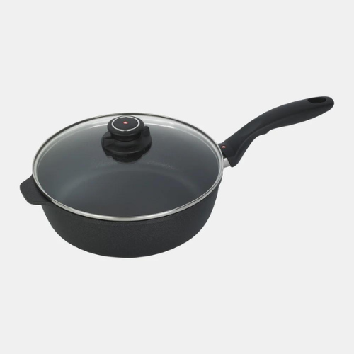 Introducing our XD Induction Saute Pan, a high-performing essential with a roomy design for cooking vegetables, meat, sauces, and more. Featuring our XD diamond-reinforced nonstick formula, it ensures improved food release with 20% more diamond crystals. Easy to clean with hot water and a soft sponge. Crafted from heavy-duty recycled cast aluminum for even heating and durability. Ideal for low to medium heat on induction cooktops, and oven-safe up to 260°C (500°F). Includes a heat-tempered glass lid for ultimate moisture control.