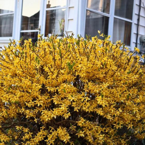As one of the earliest spring flowering shrubs, Lynwood Gold Forsythia (Forsythia x Intermedia) radiates warmth and sunshine in a yard. The stunning golden shrubs are covered in masses of bright yellow bell-shaped flowers that will brighten your yard and your mood.