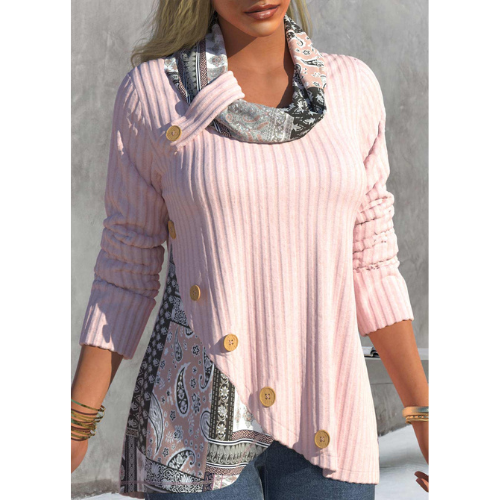 Get Discounts on MODLILY Light Pink Asymmetric Hem Paisley Print Sweatshirt