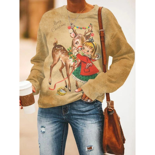 Get Discounts on winter Sale is Live Now Womens Vintage Christmas Print Crewneck Sweatshirt