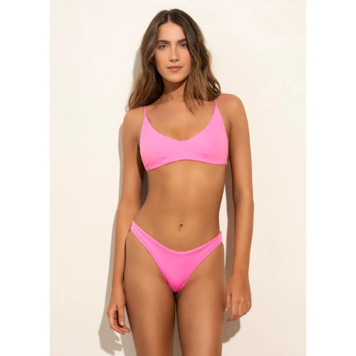 Our Omg sporty bralette bikini top can be worn day or night, and its tropical pink shade and reversible print will leave you never wanting to take it off! This swimsuit top is sleek, made from recycled fibers, and has removable soft cups, perfect for any bust size.