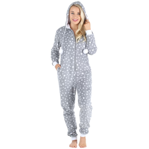 Get Exclusive Discounts on Frankie & Johnny Womens Hooded Fleece Non-Footed Onesie Loungewear Pajamas