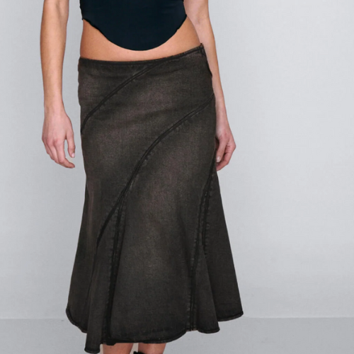 Meet the Hina Skirt in Ochre. This mid-length skirt features a mid-rise, gusset paneling, and a side zipper, and is all crafted from raw denim. Style her how you want for any occasion.
