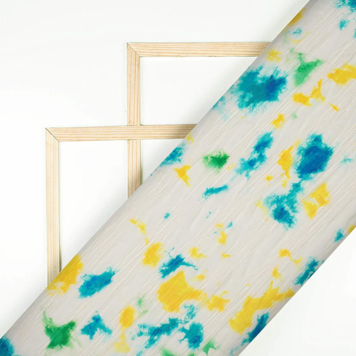 Get Exclusive Discounts on Oat Beige And Yellow Tie & Dye Pattern Digital Print BSY Crepe Pleated Fabric