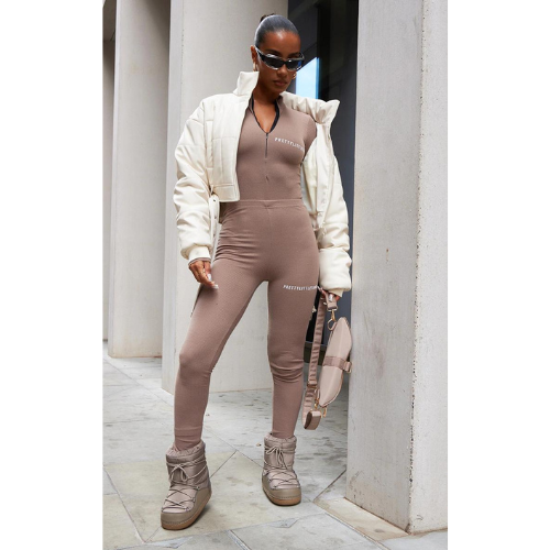 Get Exclusive Discounts on PRETTYLITTLETHING Mocha Crinkle Rib Split Hem Leggings