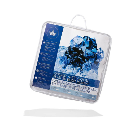 This pillow is filled with care in Canada. The pillow is filled with goose feather. Feathers provide great support in pillows, due to the feather quills. The outer shell is quilted 255 thread count cotton. The quilting results in a thicker shell, which creates a buffer against the feather, making the quills less noticeable than in a traditional feather pillow.