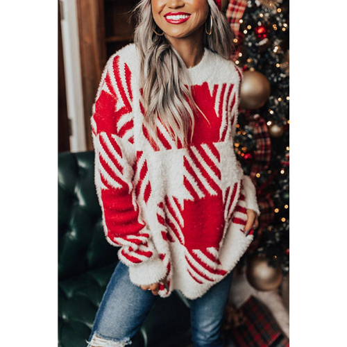 Get Exclusive Discounts on Red Fuzzy Check Drop Shoulder Sweater
