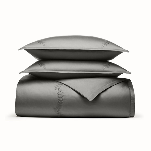 Intricate, hand-finished embroidery in a delicate scalloped vine updates our most iconic fabric: this duvet set is buttery, breathable and gets softer with every wash. It starts with the highest quality threads sourced from the finest long-staple 100% organic cotton on earth. Each thread is then luxuriously woven to ensure these sheets feel incredible for years to come.