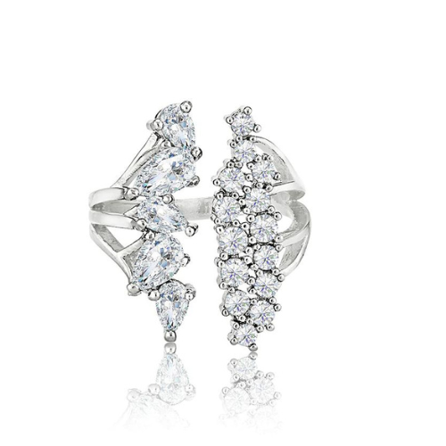 This open ring features both brilliant round and marquise cubic zirconias in polished rhodium. Elegant and impactful, this piece is just begging to be worn next to your favorite cocktail dress.