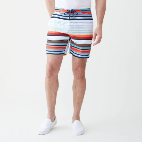 Cut from fast-drying swim fabric, this unlined boardshort comes in our most colorful stripes of the season. Inseam is 7.25” and features a Velcro® back pocket to stow small belongings, button-front closure and our signature lace-up drawcord with rubber-dipped tips. Modern and chic, with a pattern and cut that redefines where, when, and how you wear board shorts.