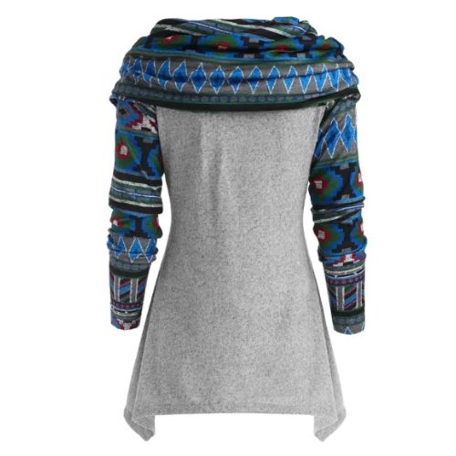 Get Instant Discounts on Seamless Geometric Pattern Cowl Neck Longline Knitwear
