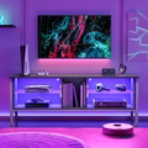 Showcase your gaming consoles, controllers, and collectibles on the two tempered glass shelves and open compartment of this TV console table. The transparent surfaces provide a magic and modern display, allowing you to proudly exhibit your gaming gear.