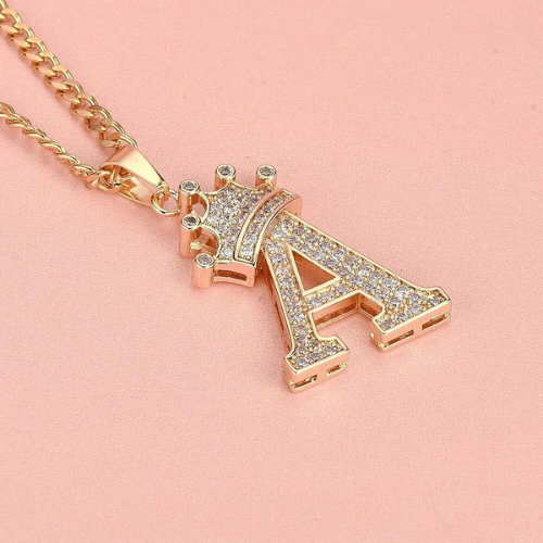 Grab Now Discounts on Crown Letter Pendant Personalized Custom Gold Plated Initial Necklace