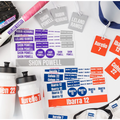 Keep your team’s look-a-like gear organized! This Team Sports Label Pack of waterproof, sweat-proof and laundry-safe labels ensure that each player receives the correct gear, while keeping equipment looking consistent. The large wraparound label is perfect for wrapping water bottles, making them easy to identify from all sides – no more germy swaps mean healthier players! Each label sheet includes a name and jersey number. These durable labels will keep your team organized and looking professional throughout the season!
