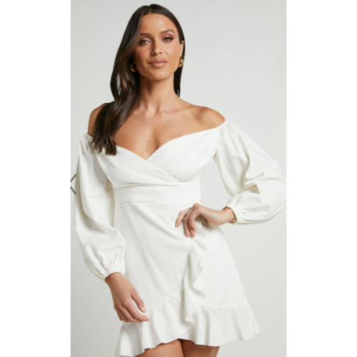 Grab Now Discounts on Hot Deals LINEN LOOK OFF SHOULDER DRESS IN WHITE LINEN LOOK