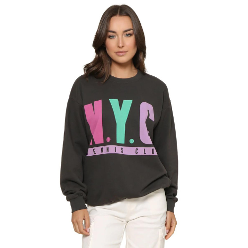 This Nyc Tennis Sweatshirt is a court-ready look for days on the court. With its crew neckline, long sleeves, and relaxed silhouette, you'll be a fashion ace! Plus, the pastel-colored lettering and fleece lining let you show your colors. Pair this sweatshirt with leggings for a cozy game of tennis!