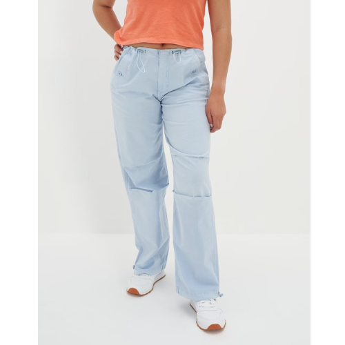 Grab Now End of Season Sale is now Live Heavy Discounts on Products American Eagle Women Blue Snappy Stretch Low-Rise Parachute Pant