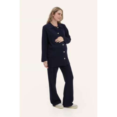 The ultimate in lounge chic, the Thomasine Sweater cardigan is made in super soft recycled polyester sweater knit. Designed to pair with the Georgina Knit Pants or a pair of jeans, this sweater is the ultimate in mama versatility.