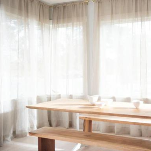 These sheer, almost weightless curtain panels are made from an open-weave pure linen 60" wide. We allow one 60" panel per 36" of the window to be on the generous side, as the fabric is so light and airy.