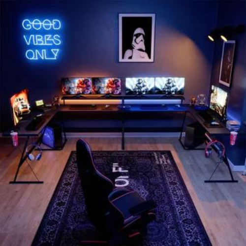 This desk is all about convenience, with a built-in cup holder and headphone holder, allowing you to stay hydrated and focused on your game or work without any interruptions
