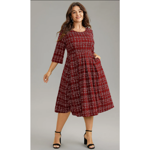 Grab Now Sale is Live Discounts on Geometric Elastic Waist Round Neck Cropped Dress