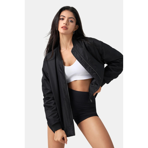 • Collar, cuffs, and hem adorned with ribbed trim