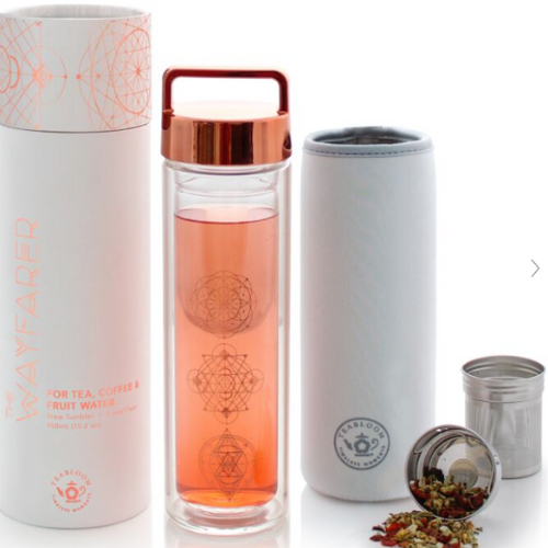 SAVOR SMART, FUNCTIONAL DESIGN. The Wayfarer holds 450 ml (15 oz) and is exquisitely crafted with durable, double-wall borosilicate glass and beautiful rose-gold metallic details. Borosilicate glass is resistant to stains, odors, and corrosion. Slim design fits all car cupholders.