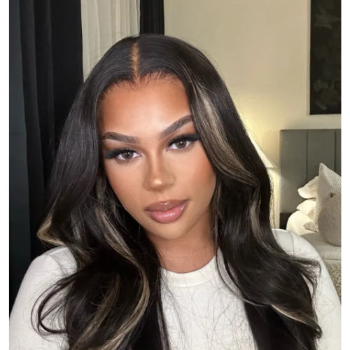 Grab Now Sale is Live Discounts on Wear Go 7x5 Pre-Cut Glueless Lace Invisible Knots Black With Blonde Highlights Body Wave Human Hair Wig 150 Density