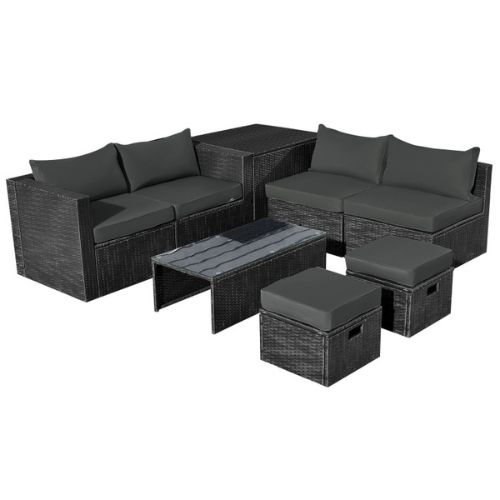 In order to rearrange your outdoor space based on your preference and available place, this 8-piece outdoor patio furniture set with 1 tempered glass coffee table, 1 storage box, 2 ottomans, 2 armless sofas and 2 corner sofas allows you to combine them into different layouts for great flexibility.