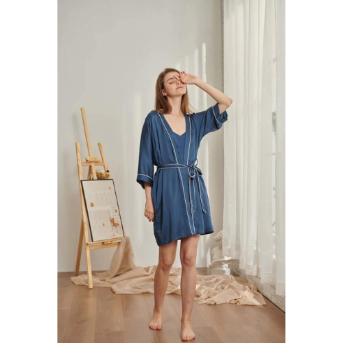 Grab Now Sale Is Live Now Discounts on Counting stars Embroidered Vegan Silk Kimono - Blue mirage