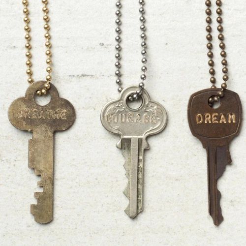 • A unique, one-of-a-kind key paired with a 30" gold ball chain necklace