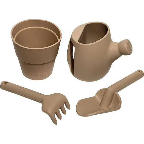 Our set includes a watering can, pot, shovel, and rake and is made with 100% soft silicone. These pieces are soft on small hands and safe for your little ones with no sharp edges or pieces. They are durable and will last you years of fun!