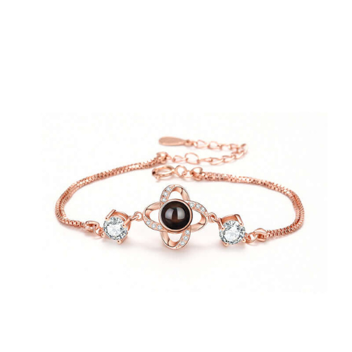 HOT Deals Blooming Discounts Offers on Custom Four-leaf Clover Projection Photo Felicity Bracelet