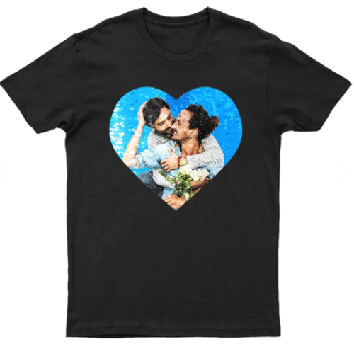 HOT Deals Blooming Discounts Offers on Custom Rainbow Heart Flip Sequin Shirt (Double Print)