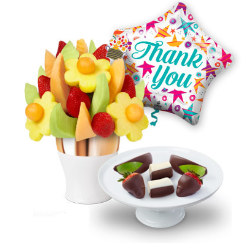 Grapes are no longer included in the arrangements. Product does not come with plate, this product will be delivered in an custom Edible Arrangements® gift box. Design may vary. Container may vary.