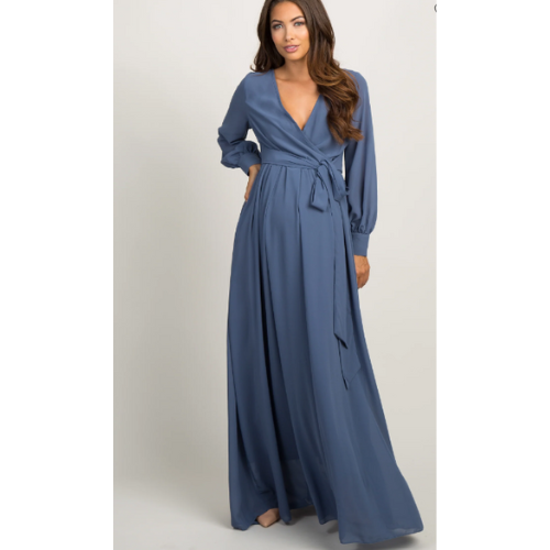 Hurry up Clearance Sale is Live Blue Chiffon Long Sleeve Pleated Maternity Maxi Dress