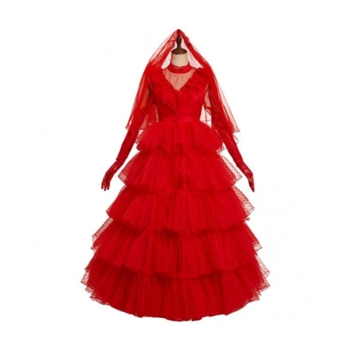 Lydia Deetz Beetlejuice Beetle Juice Red Wedding Dress Halloween Cosplay Costume. Standard Shipping: 12-18 days.