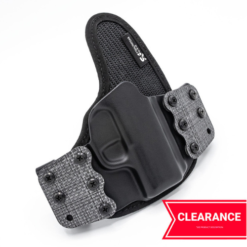 Clearance holsters are overstock and factory second holsters available at heavily discounted prices. All have been tested for 100% fit and function, they may just have a cosmetic quirk or two. Be sure to do your research and purchase the correct holster for your firearm.