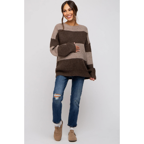 Hurry up Clearance Sale is Live Now Brown Striped Color Block Maternity Sweater